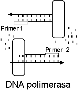 La ADN polimerasa es una enzima muy particular que requiere de un "primer". La ADN polimerasa tiene poca iniciativa: no inicia la síntesis de ADN si no tiene un pedacito ya comenzado (un adelanto). Este pedacito se llamará en adelante "primer" y marca el lugar desde el cual la ADN polimerasa simplemente seguirá, a toda velocidad y sin parar, añadiendo nucleótidos complementarios a la secuencia de la cadena molde. Sin discutir el porqué de esta actitud de la polimerasa, pasemos a lo del PCR y veremos las implicaciones que esto tiene para la técnica en cuestión.